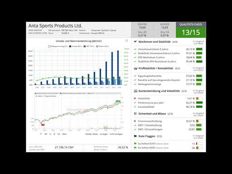 Im Qualitäts-Check auf aktie.traderfox.com erhält Anta Sports 13 von 15 möglichen Punkten.