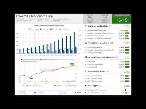 Im Qualitäts-Check auf aktie.traderfox.com erhält Edwards Lifesciences 15 von 15 möglichen Punkten.
