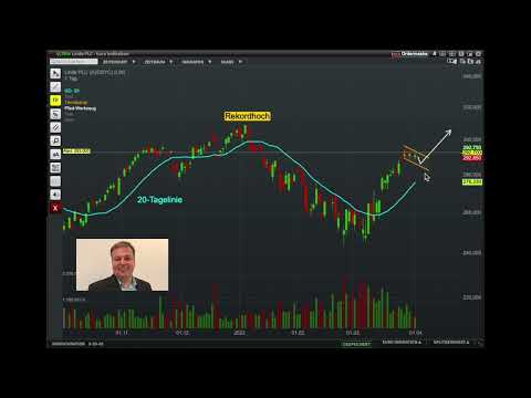 Im heurigen Jahr ging es für die Aktien vom Rekordhoch bei 309 EUR bis auf 244 EUR in Richtung Süden. Mittlerweile konnten die Linde-Papiere aber bereits wieder Boden gut machen. Die aktuelle Konsolidierung ließe sich für einen Einstieg in die Aktie nutzen. Bei einem Breakout aus der bullischen Flagge bekämen wir ein Kaufsignal, welchem man mit der Eröffnung einer Long-Position folgen könnte. Damit ich über einen möglichen Ausbruch sofort informiert werde, habe ich mir bei 293 Euro einen Alarm direkt in den Chart gelegt.