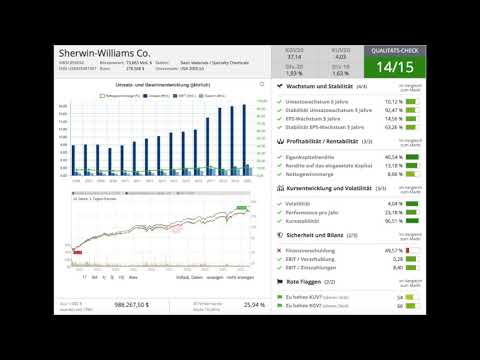 Im Qualitäts-Check auf aktie.traderfox.com erhält Sherwin-Williams 14 von 15 möglichen Punkten.