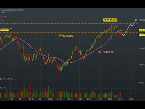 Nachdem die Aktie Anfang August ein neues Allzeithoch erreicht hat, bildete sich ein Doppel-Top aus. Das Kursziel der Formation wäre bereits abgearbeitet. Wenn die Symrise-Aktie den 50-Tagedurchschnitt wieder zurückerobern kann, möchte ich sofort informiert werden, um einen Einstieg zu prüfen. Dazu habe ich mir bei rund 122 EUR einen Alarm direkt in den Chart gelegt.